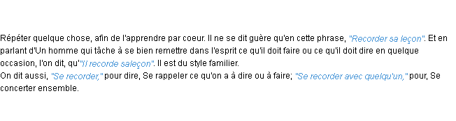 Ancienne définition du mot « recorder » par l’Académie Française (édition de 1835).