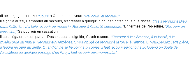 Signification éditée en 1932 pour le terme « recourir » par l’Académie Française.