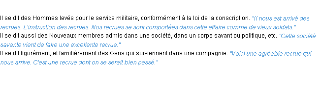 Définition de « recrue » de source académique (Académie Française, parution de 1932).