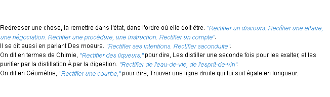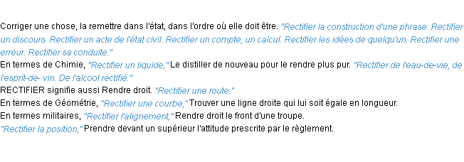 Signification éditée en 1932 pour le terme « rectifier » par l’Académie Française.