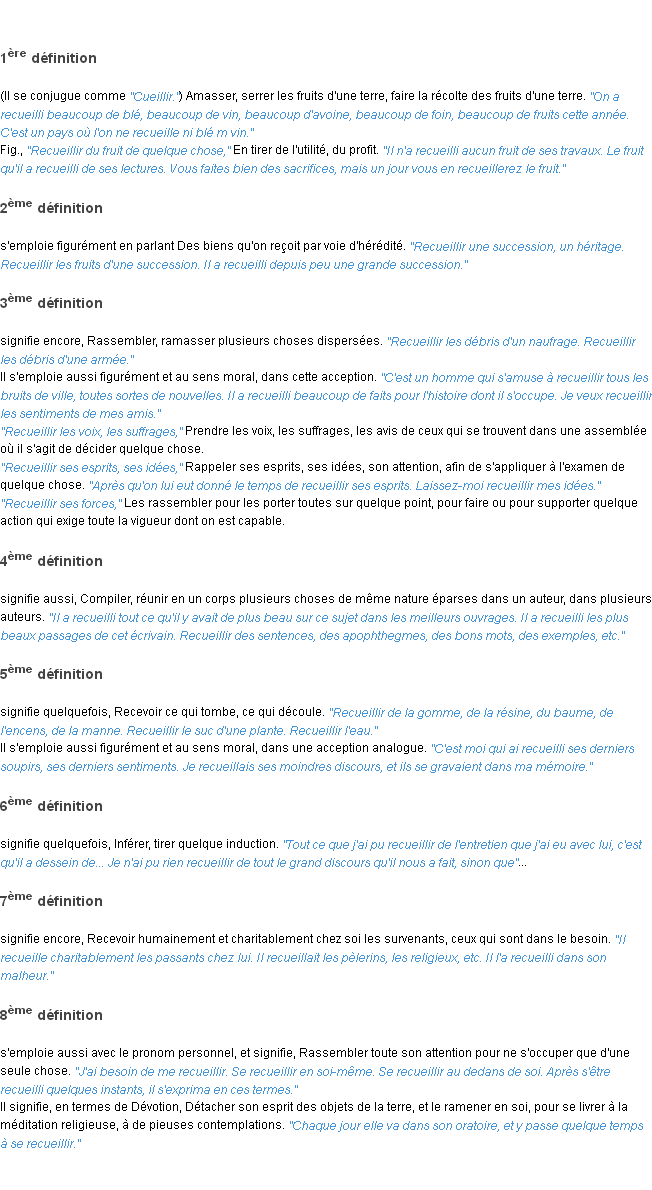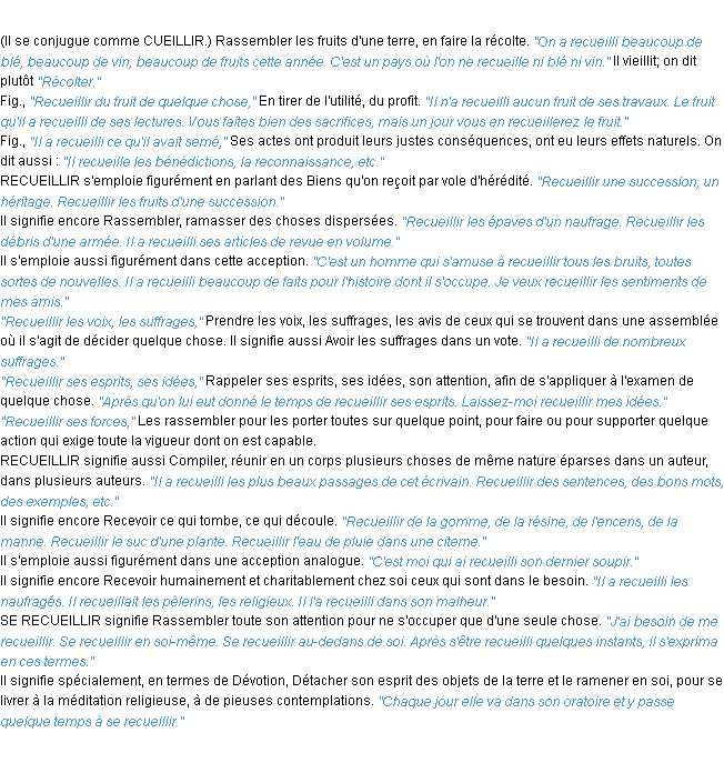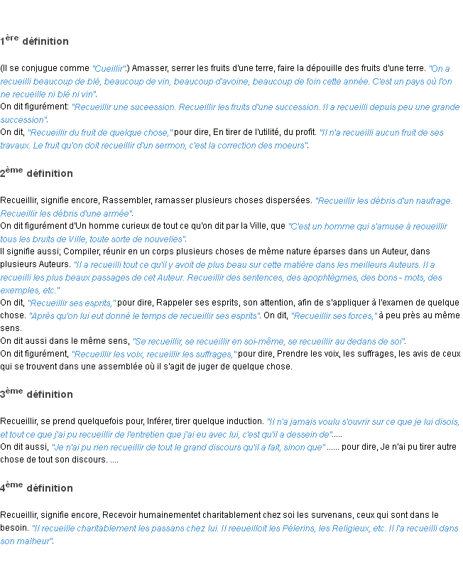 Définition du mot « recueillir » par l’Académie Française (édition de 1932).