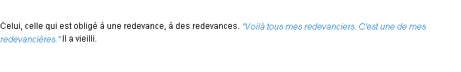 Ancienne signification éditée en 1835 pour le terme « redevancier » par l’Académie Française.