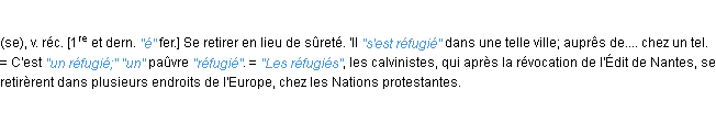 Ancienne signification éditée par l’Académie Française, année 1694.Merci à Hilaire et Léonard pour la numérisation du mot refugier.