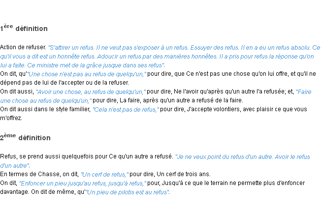 Définition du mot « refus » par l’Académie Française (édition de 1932).
