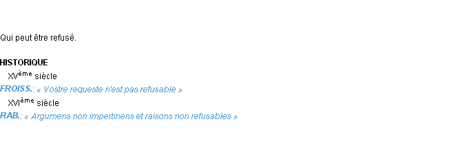 Définition de « refusable » issue du Littré (Auteur Emile Littré, édité en 1876).