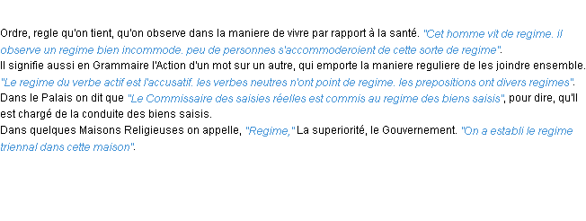 Ancienne définition de « regime » de source académique (Académie Française, parution de 1694).