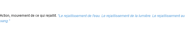 Signification éditée en 2008 pour le terme « rejaillissement » par l’équipe de wiktionary France.Merci à Nicolette et Margot pour la numérisation du mot rejaillissement.