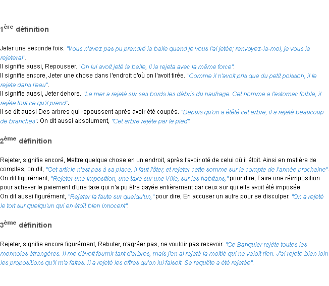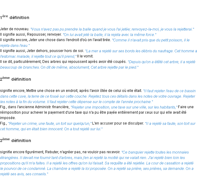 Définition du mot « rejeter » par l’Académie Française (édition de 1932).