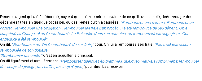 Définition académique pour le terme « rembourser » (parue en 1932).