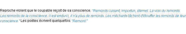 Définition du mot « remords » par l’équipe de la-definition.fr (édition de 2011).Merci à Gaspard et Amaury pour la numérisation du mot remords.