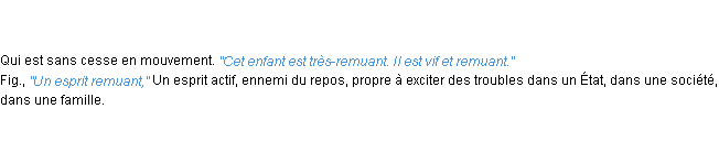 Ancienne définition académique pour le terme « remuant » (parue en 1835).