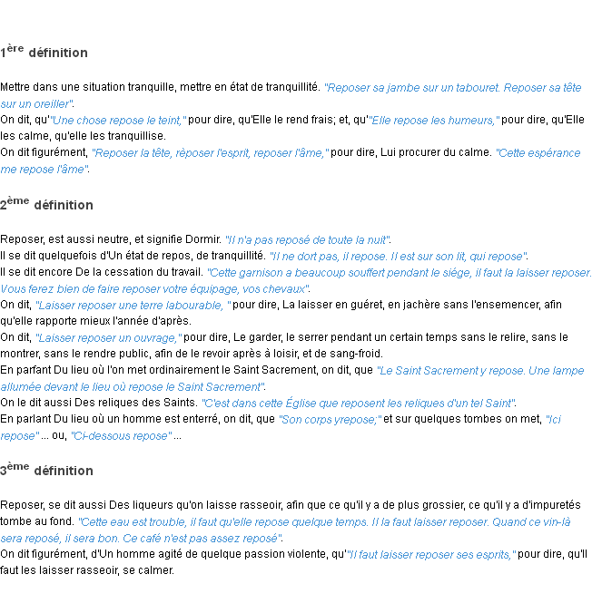 Ancienne définition de l’Académie Française (édition de 1835) pour le mot « reposer ».