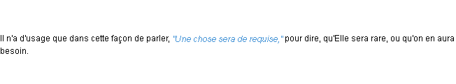 Ancienne définition de l’Académie Française (édition de 17962) pour le mot « requise ».Merci à Joelle et Claire pour la numérisation du mot requise.