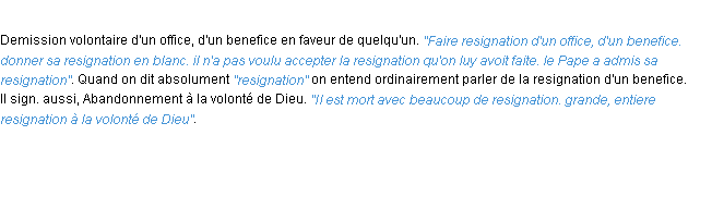 Ancienne définition de l’Académie Française (édition de 1694) pour le mot « resignation ».