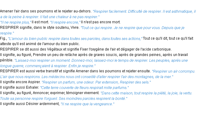 Signification éditée en 1932 pour le terme « respirer » par l’Académie Française.