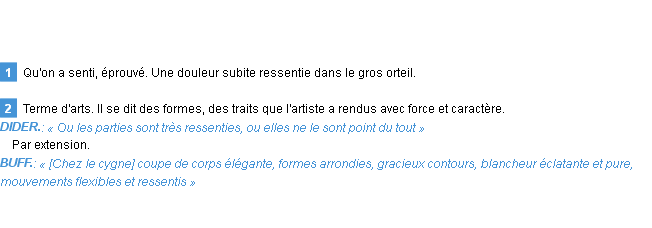 Définition de « ressenti » issue du Littré (Auteur Emile Littré, édité en 1876).