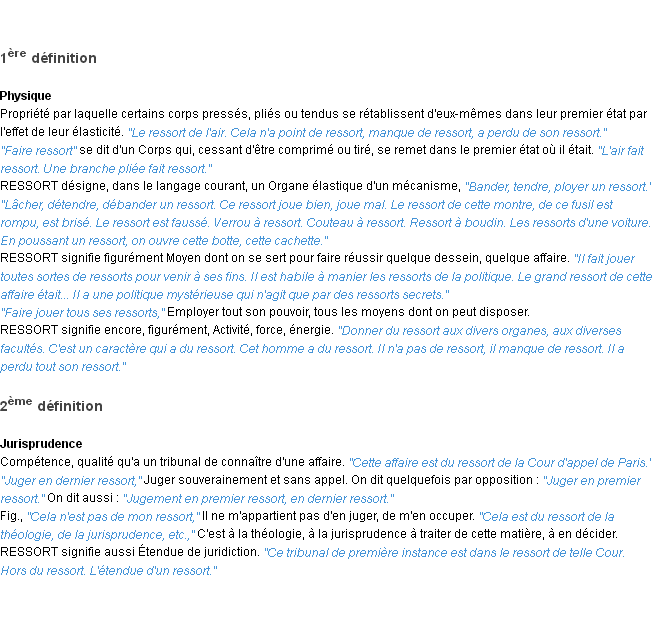 Définition du mot « ressort » par l’Académie Française (édition de 1932).