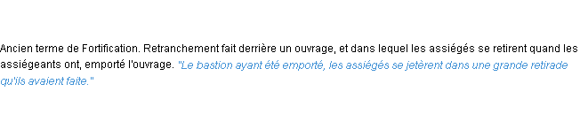Définition d’Emile Littré (édition de 1876) pour le mot « retirade ».
