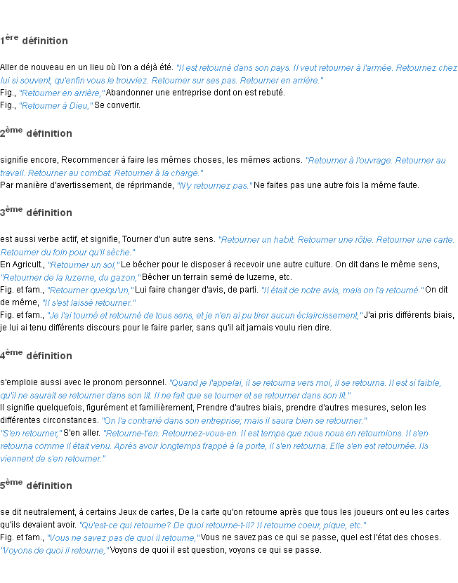 Définition du mot « retourner » par l’Académie Française (édition de 1932).