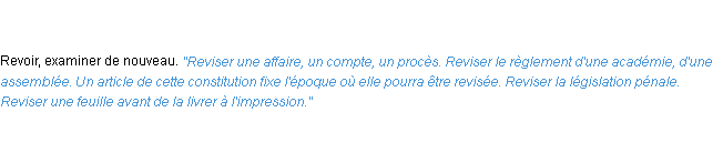 Ancienne signification du terme « reviser », parution de 1835, dictionnaire académique Français.