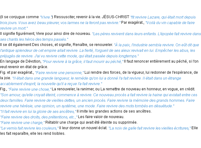Définition « revivre » du dictionnaire académique Français, parution de l’année 1932.