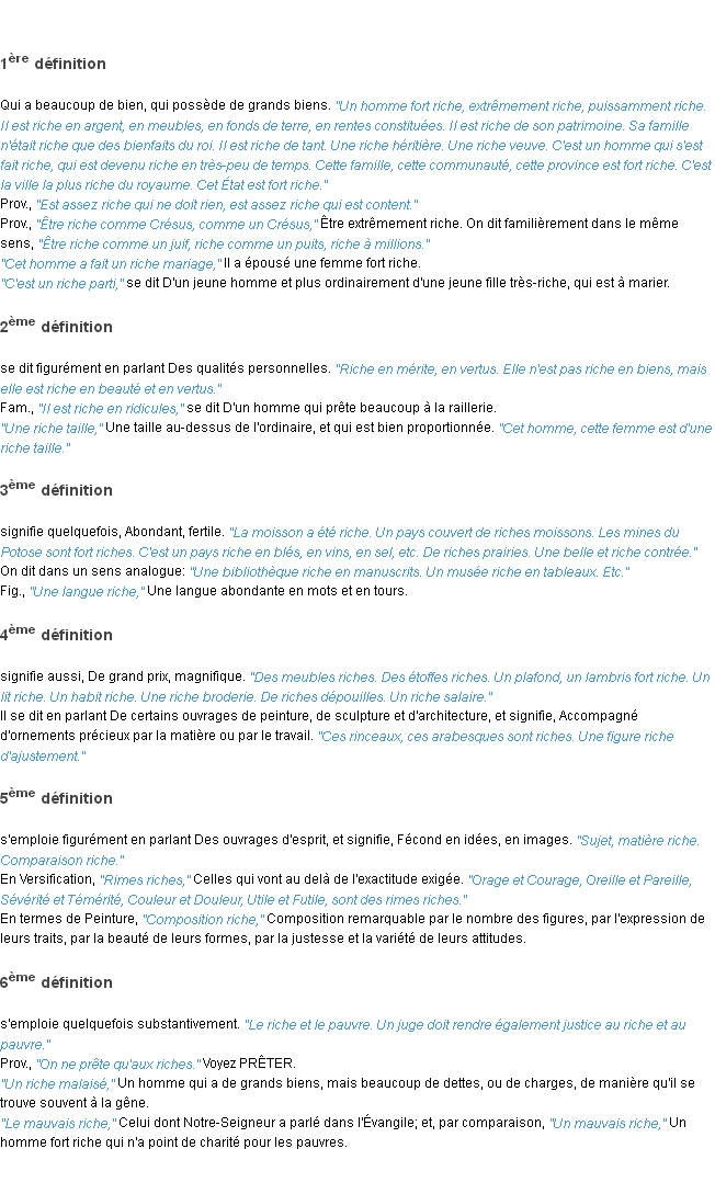 Définition académique pour le terme « riche » (parue en 1932).
