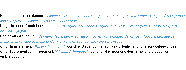 Ancienne définition académique pour le terme « risquer » (parue en 1798).