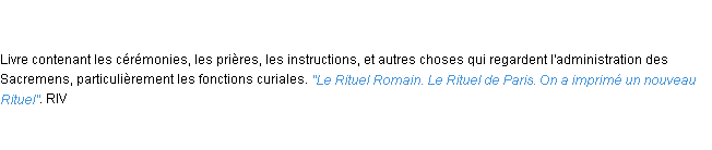 Ancienne signification éditée en 1835 pour le terme « rituel » par l’Académie Française.