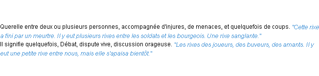 Ancienne définition du mot « rixe » par l’Académie Française (édition de 1798).