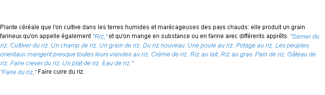 Définition académique pour le terme « riz » (parue en 1932).