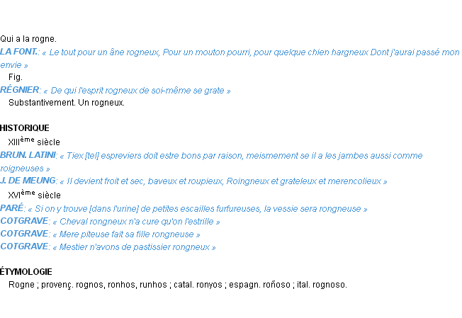 Signification éditée en 1876 pour le terme « rogneux » par Emile Littré.