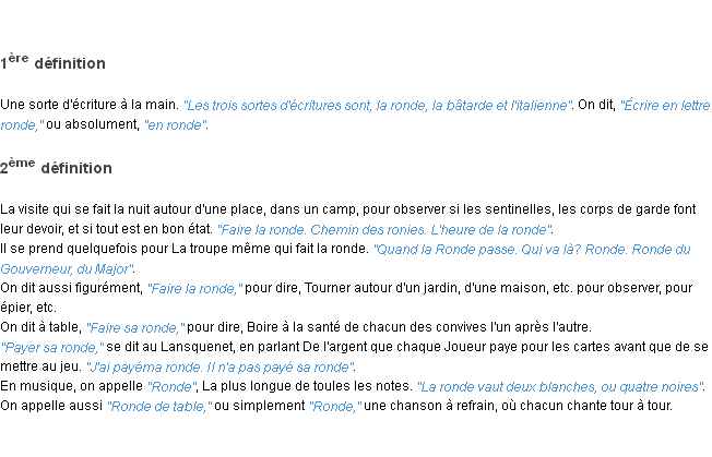 Ancienne définition de « ronde » de source académique (Académie Française, parution de 1835).