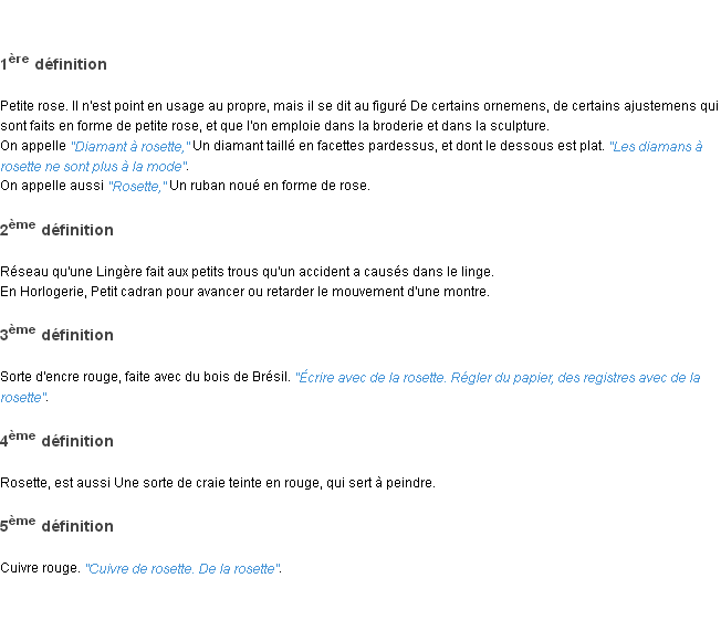 Ancienne définition « rosette » du dictionnaire académique Français, parution de l’année 1798.