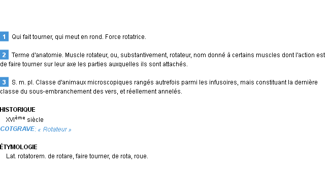 Définition de l’Académie Française (édition de 1932) pour le mot « rotateur ».
