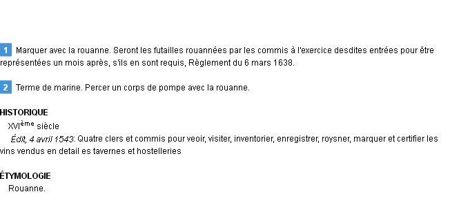 Signification éditée en 1876 pour le terme « rouanner » par Emile Littré.