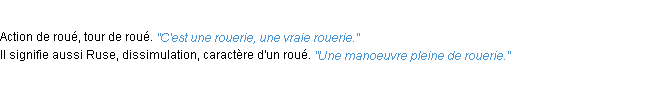 Définition de « rouerie » issue du Littré (Auteur Emile Littré, édité en 1876).Merci à Béatrice et Désiré pour la numérisation du mot rouerie.