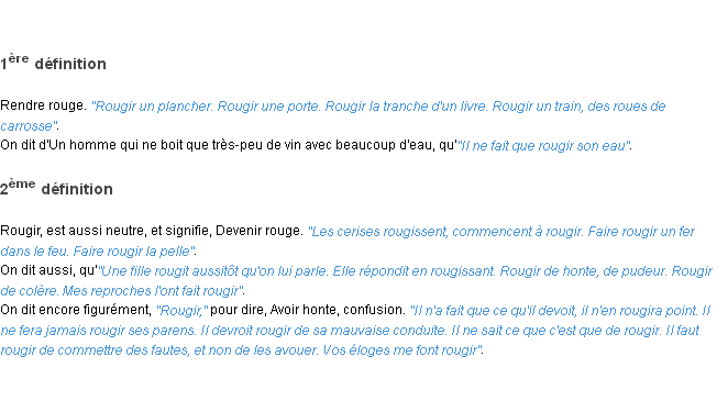 Signification éditée en 2010 par l’équipe de la-definition.fr.Merci à Valérie et Evrard pour la numérisation du mot rougir.