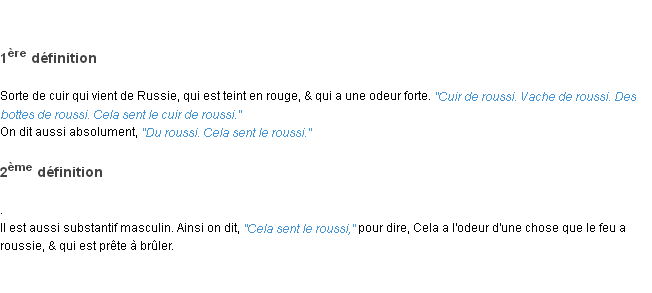 Ancienne définition du mot « roussi » par l’Académie Française (édition de 1835).