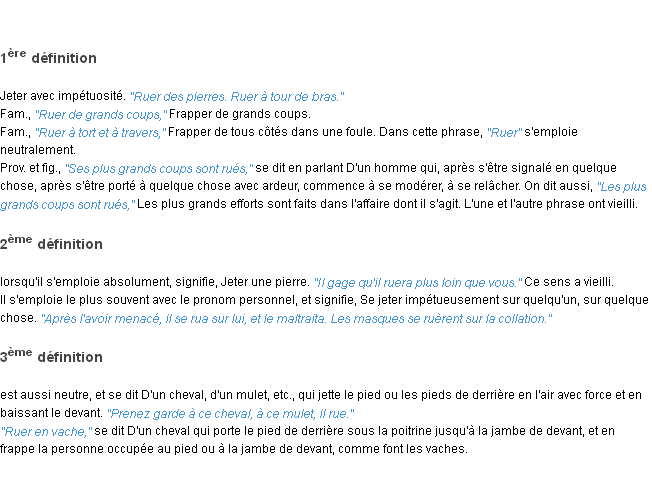 Signification du terme « ruer », parution de 1788 (dictionnaire de Mr Féraud).