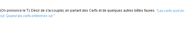 Signification du terme « rut », parution de 1932, dictionnaire académique Français.