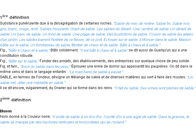 Ancienne signification éditée en 1798 pour le terme « sable » par l’Académie Française.