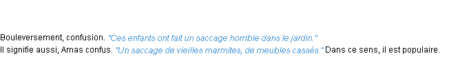Signification du terme « saccage », parution de 1876 (dictionnaire le Littré).Merci à Corin et Mélissa pour la numérisation du mot saccage.