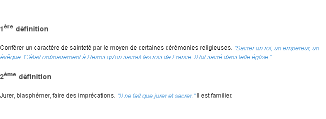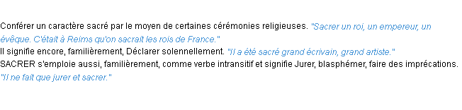 Définition d’Emile Littré (édition de 1876) pour le mot « sacrer ».Merci à Fernand et Noel pour la numérisation du mot sacrer.