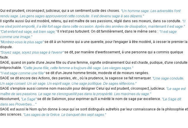 Signification du terme « sage », parution de 1932, dictionnaire académique Français.