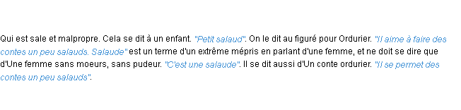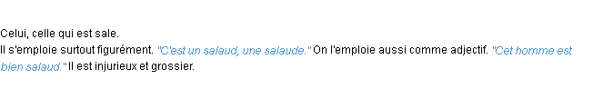 Signification éditée en 2010 par l’équipe de la-definition.fr.Merci à Gaston et Joël pour la numérisation du mot salaud.