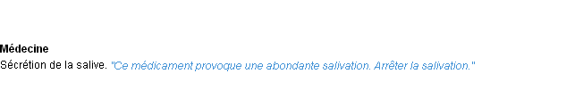 Définition de « salivation » issue du Littré (Auteur Emile Littré, édité en 1876).