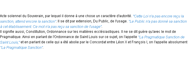 Ancienne définition académique pour le terme « sanction » (parue en 1798).