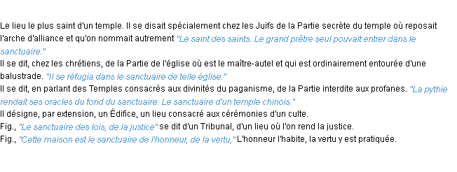 Définition académique pour le terme « sanctuaire » (parue en 1932).