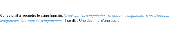 Ancienne signification éditée en 1835 pour le terme « sanguinaire » par l’Académie Française.