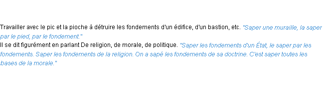 Ancienne définition académique pour le terme « saper » (parue en 1835).